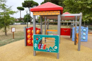 A seguito della riqualificazione dell’area grazie al fondo per l’inclusione del Decreto del 29 novembre 2021 all’interno del Parco giochi Versilia è stata allestita un’area di circa 300 mq con pavimentazione antitrauma dove sono stati installati dei nuovi giochi accessibili ed inclusivi per tutti i bambini.
